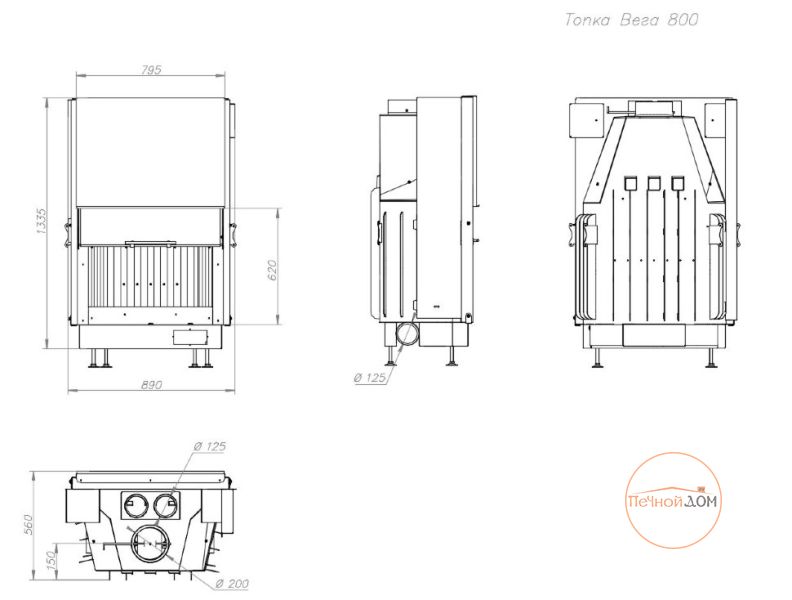 Топки ВЕГА это сплав наших знаний о современных Европейских тенденциях в области создания каминных топок и требований отечественного покупателя к удобству эксплуатации, внешнему виду и надежности камина. Каминные топки Вега принесут в ваш дом атмосферу комфорта, и отлично впишутся в любой интерьер. Мы производим каминные топки из высококачественной котельной стали и наносим термостойкое лакокрасочное покрытие с антикоррозийными свойствами. Топки серии ВЕГА имеют следующие конструктивные особенности: Топочная камера футерована современным материалом, литьевым шамотом бежевого или черного цвета (по желанию покупателя) и надежно защищает металлические детали корпуса топки от перегрева. Жаропочное стекло из Японии способно выдерживать температуру до 750 С. Система тепловой разводки имеет два встроенных патрубка диаметром 125 мм для подключения системы распределения теплого воздуха в смежные помещения и позволяет увеличить площадь обогреваемых помещений. Система забора воздуха извне, имеет два встроенных патрубка диаметром 125 мм для подключения забора воздуха на горение из соседнего помещения, улицы, подвала, и повышает надежность работы топки. Система очистки стекла эффективно очищает жаропрочное стекло и позволяет любоваться красотой огня. Система вторичного дожега увеличивает КПД топки и позволяет экономить дрова. Встроенная шиберная заслонка позволяет увеличивать/уменьшать сечение дымового канала и регулирует мощность топки. Ребра жесткости по всему корпусу топки и встроенные в дымосборник тепловые каналы позволяют снимать больше тепла и отдавать его в помещение путем конвекции. Высокий дымосборник и пламярассекатель не позволяют дымовым газам попадать в помещение при открывании дверцы. Бесшумная и надежная тросовая система с противовесом и жаропрочными подшипниками, позволяет открывать дверцу топки вверх и производить закладку дров в топочную камеру. Для оптимизации процессов горения все регулировки подачи воздуха на систему первичное горение, систему очистки стекла и встроенную шиберную заслонку производятся специальным ключом «ХОЛОДНАЯ РУКА». Под чугунной колосниковой решеткой в днище топки, находится большой зольный ящик, который удобно вынимается. Устойчивые, регулируемые по высоте ножки, позволяют при монтаже установить топку по уровню.
