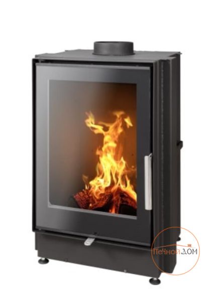 При первом знакомстве сразу отмечаем увеличенный обзор дверцы. Инженеры компании ABX перенесли технические элементы с дверцы на корпус топки, оставив только стеклокерамику с тонировочной полосой, которая фиксируется тонкой рамкой на самой дверце. Внутренний объем топки увеличен, что позволяет использовать дрова большей длины, чем в предыдущих вариантах класса «York». Система третичного воздухообмена ORION контролируется удобным рычагом, расположенным под дверцей. Плавная регулировка позволяет контролировать мощность топки от 3,5 до 9 кВт. Коэффициент полезного действия существенен – до 80,5%. Топка снабжена фирменной системой подачи внешнего воздуха компании ABX.