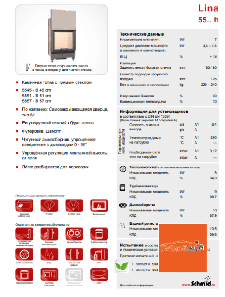 Футеровка топки изготавливается из шамота или вермикулита на выбор. Возможен вариант черной футеровки внутри топки. Для модели Lina 5580h футеровка изготовляется только из вермикулита