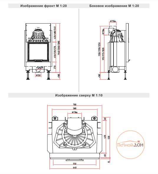 Ножки топки регулируются по высоте от 170 до 300 мм