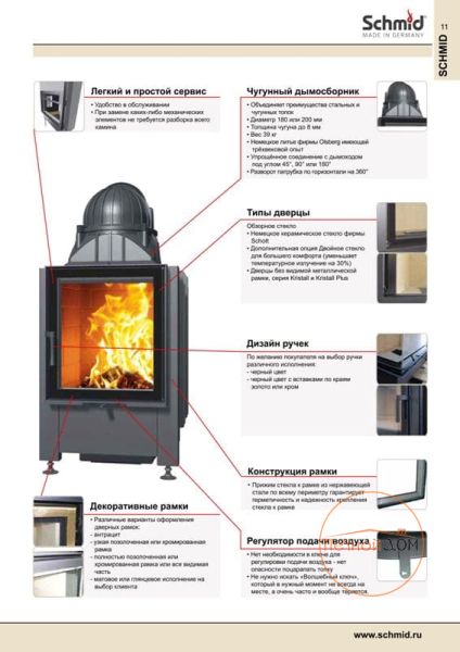 Оснащена чугунным дымосборником немекого литья фирмы Olsberg, за счет чего объединяет преимущества стальных и чугунных топок