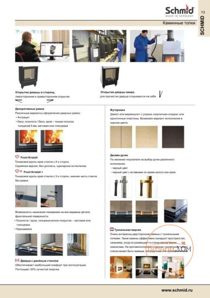 В качестве опций доступны: двойное остекление для снижения температуры излучения на 30%, а также дверцы без видимой металлической рамки Kristall и Kristall Plus