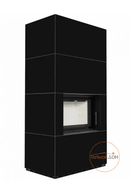 Преимущество каминокомплекта заключается в простоте установки, без трудоемких строительных работ. Дверца топки открывается вбок, имеет узкую рамку для стекла с шелкографией, увеличивающей обзор, холодную, перфорированную ручку, герметичный фланец подключения внешнего воздуха, высокий дымосборник и фирменный чугунный, регулируемый патрубок дымохода диаметром 160мм.