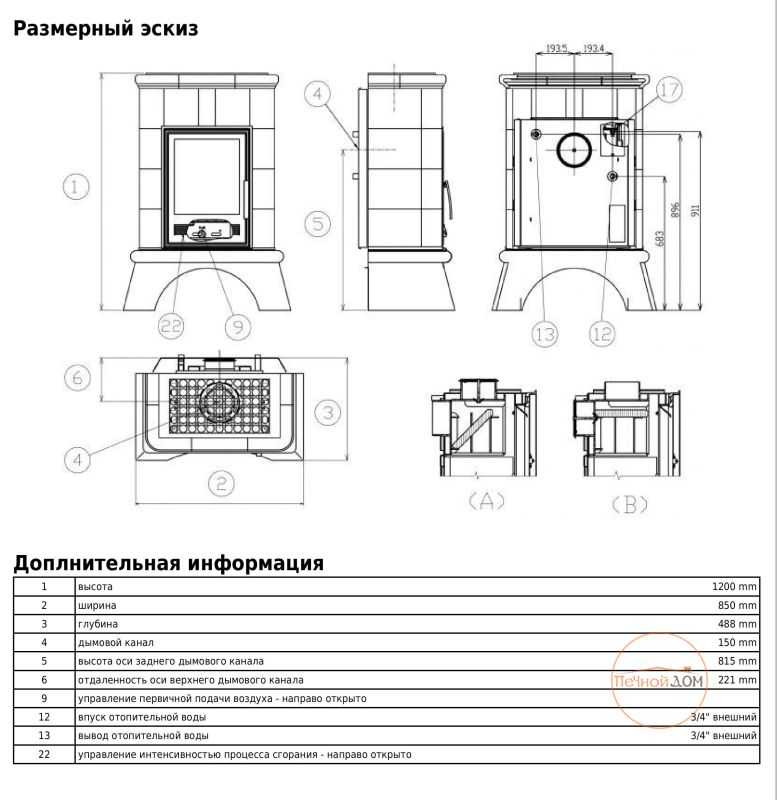 | Материал изготовления топки | корпус сталь, дверца чугун |