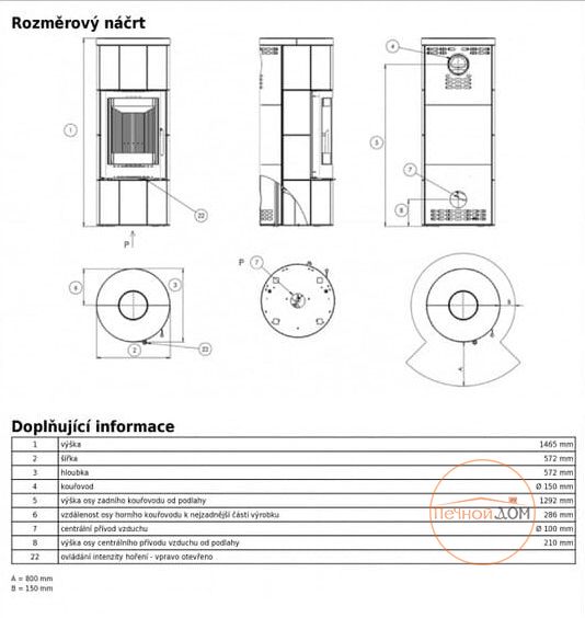 | Опции каминов и печей | вторичный дожиг, подача воздуха извне |