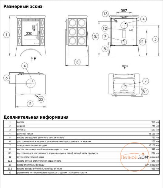 | Материал изготовления топки | корпус сталь, дверца чугун |