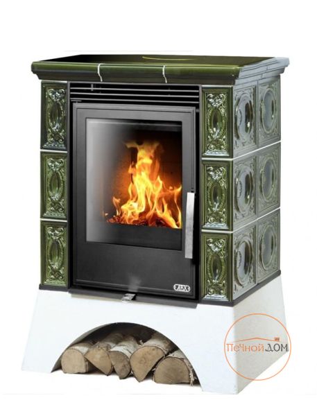 Модель камина Helvetia KP завоевала прочную популярность на российском рынке. Отличительными особенностями этой кафельной печи являются компактный размер, оригинальные изразцы, используемые для облицовки, достаточная мощность (5-9кВт), белый цоколь с дровником. Новая технология соединения изразцов при производстве облицовки позволила сократить затраты и, соответственно, снизить цену. Также отличительной особенностью модификации «КР» является полностью кафельная верхняя крышка, что придает ей законченный и цельный вид. Топка Helvetia KP имеет встроенный теплообменник, мощность 6,9 кВт, что позволяет подключить к ней систему радиаторов или теплый пол.