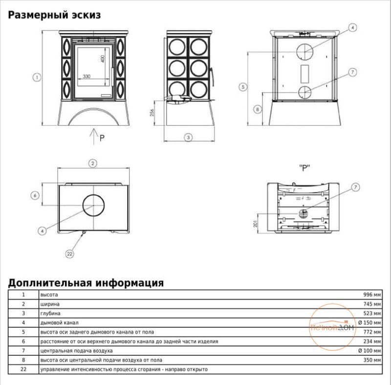 | Материал изготовления топки | корпус чугун, дверца сталь |