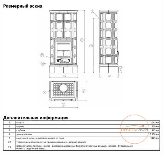 | Опции каминов и печей | вторичный дожиг, система чистое стекло |