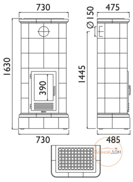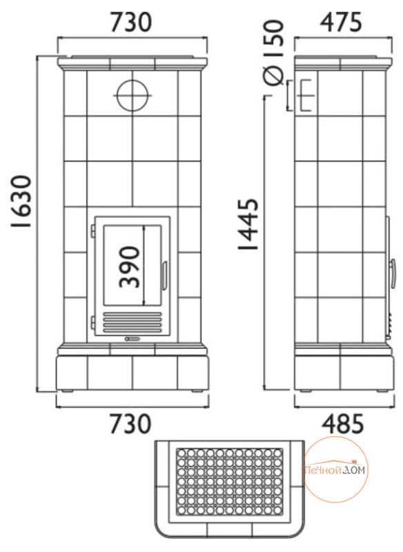 | Диаметр дымохода, мм | 150 |