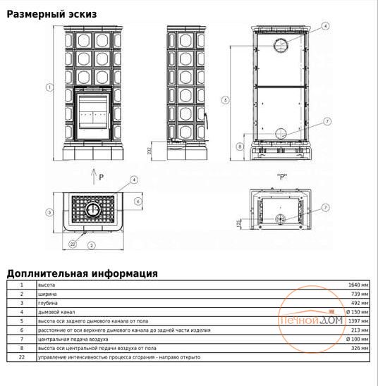 | Диаметр дымохода, мм | 150 |