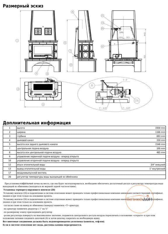 | Дизайн и исполнение | изразцовая печь-камин |
