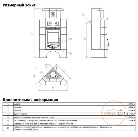 | Материал изготовления топки | корпус чугун, дверца сталь |