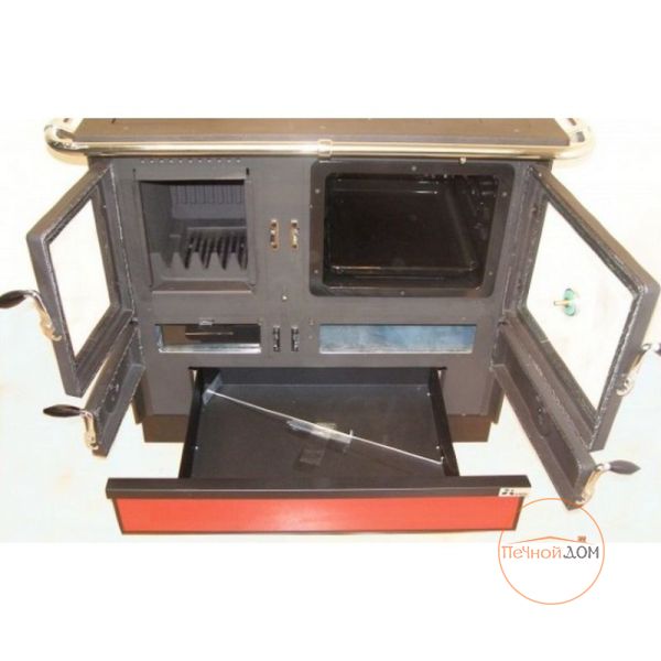 Большая топка снабжена колосниковой решёткой, которая делит её на две части. Такая система позволяет готовить на плите в жаркое летнее время, снижая отопительные возможности плиты.