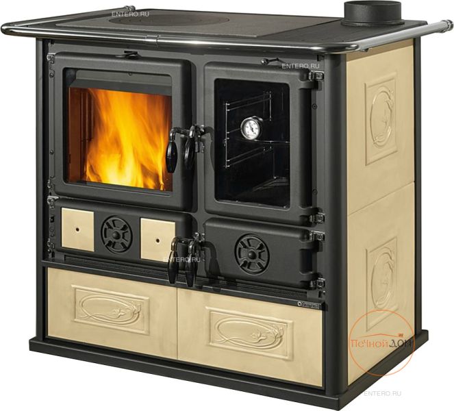 La Nordica Rosa Reverse - ещё одна из моделей отопительно-варочной печи-камина итальянского производства. Она сочетает в себе три основных компонента, которые не только способны обеспечивать Ваш дом быстрым и качественным обогревом, но и сделать жизнь намного проще. Печь-камин La Nordica Rosa Reverse оснащена вместительным духовым шкафом и поверхностью для варки. Изготовлена печь камин из литого чугуна высокого класса, который, как известно, обладает отличной теплоотдачей, благодаря чему помещение нагревается быстрее. А за счет прочности чугуна, печь прослужит более длительное время. Духовой шкаф печи-камина Rosa Reverse покрыт специальной термоустойчивой эмалью.