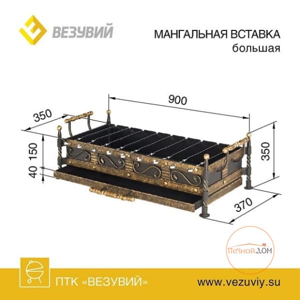 Мангал (гриль-вставка, мангальная вставка) предназначен для установки в портал кирпичного печного комплекса барбекю для приготовления пищи на углях вне помещений, на открытом воздухе.