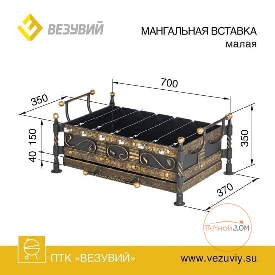 Мангал (гриль-вставка, мангальная вставка) предназначен для установки в портал кирпичного печного комплекса барбекю для приготовления пищи на углях вне помещений, на открытом воздухе.