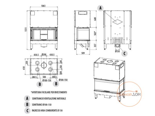 Благодаря герметичной топочной камере, оборудованной патрубком для подключения приточной вентиляции (150 мм), каминные топки данной серии идеально подходят для установки в энергосберегающих домах, обеспечивая высокую производительность, экономию топлива, бережное отношение к природе и бюджету пользователя.