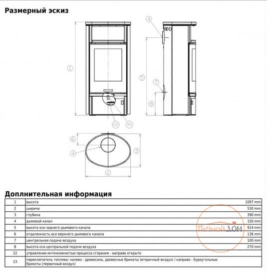 | Диаметр дымохода | 150 мм |