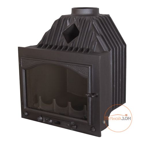 РЕТРО (Retro) это монолитная отопительная топка. Само название серии определяет стиль. Эта топка для ценителей традиции и тёплого интерьера. Монолитная каминная топка изготовлена из серого чугуна высшего качества, способом литья в песочные формы. Толщина стенок корпуса от 8 mm до 22 mm. Корпус (камера сгорания) представляет собой цельную форму - монолит, дверка топки и витрина зольника подогнаны к корпусу способом шлифовки, что позволяет добиться абсолютной плотности без использования уплотнительного шнура. Вертикальные боковые каналы, по которым воздух проходит в камеру сгорания, в корпусе закрыты со стороны стекла дверки, благодаря чему воздух поступает сверху создавая вихревой поток и, обходя стекло, оставляет его чистым. Это позволяет получать эффективную теплоотдачу в помещении, в котором смонтирована каминная топка, а так же позволяет восхищаться красотой горения дров. Стекло вмонтированное в дверки является жаростойким и выдерживает температуру 800 градусов С. Плотное и сильное закрытие дверки при помощи ригеля или пружинного самозатягивающегося ригельного замка, гарантирует стабильное и безопасное закрытие камеры сгорания. Мощная конструкция и большое количество вертикальных рёбер, придаёт каминной топке стабильность. Наружные и внутренние вертикальные рёбра создают большую поверхность теплообмена. Два регулятора, находящихся с правой и левой сторон, внизу фронтальной стороны топки, предназначены для регулирования подачи воздуха в камеру сгорания (полное вторичное сгорание. Внутри корпуса, в нижней части топки, расположены колосники с отверстиями, под которыми находится зольный ящик. В верхней части камеры сгорания находится профилированный дефлектор (заслонка), который выполняет функцию перегородки, между нижней и верхней частью камеры сгорания. Под дефлектором собираются газы, выделяющиеся при сгорании древесины и наступает эффект догарания древесных газов. Топливо для топки - древесина лимственных пород. Длина полена 400 mm. Гарантия 10 лет. Производитель Польша.