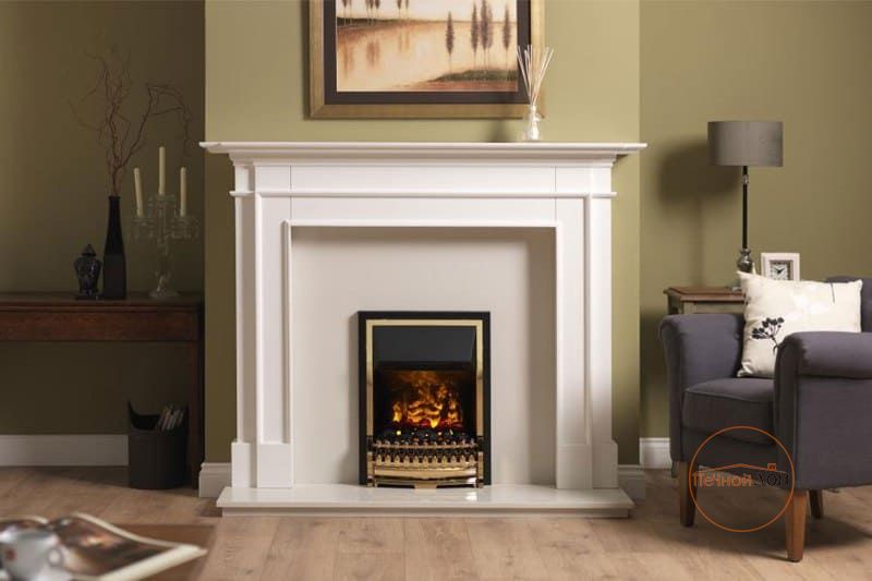 Электрический очаг Dimplex Atherton серии Opti-Myst с эффектом реального пламени. Этот стильный классический очаг в блестящем латунном обрамлении предназначен для встраивания в порталы, выполненные в классическом стиле.