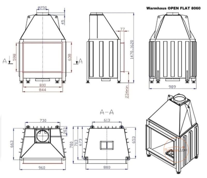 Открытая каминная топка FLAT 80/60 / Warmhaus Fireplace Company (Россия)