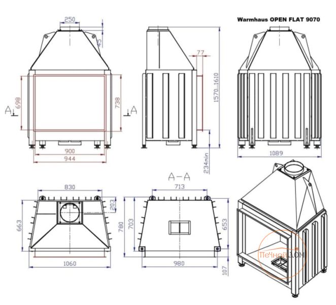Открытая каминная топка FLAT 90/70 / Warmhaus Fireplace Company (Россия)