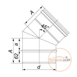 Одноконтурный отвод из зеркальной нержавеющей стали марки AISI 304 толщиной 0,8 мм предназначен для соединения с другим дымоходом под углом в 45 градусов или для смещения оси дымохода.