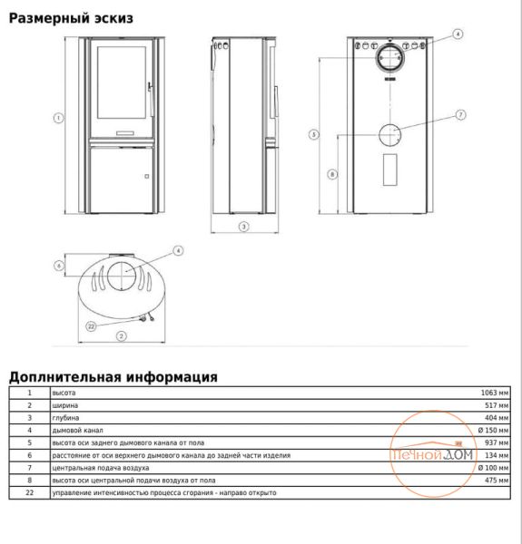 | Опции каминов и печей | система чистое стекло, подача воздуха извне |
