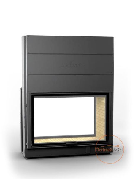 Две дверцы с прямым стеклом. Пространная, сквозная модель, великолепно вписывается в межкомнатные перегородки, для созерцания огня как из гостиной, так и из спальни или кабинета, служит отличной основой, для создания центрального (островного) камина.