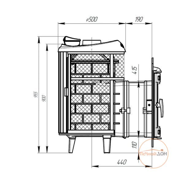 Большой объем топки и топливного тоннеля позволяет топить печь крупными, долго горящими дровами длиной от 40 см