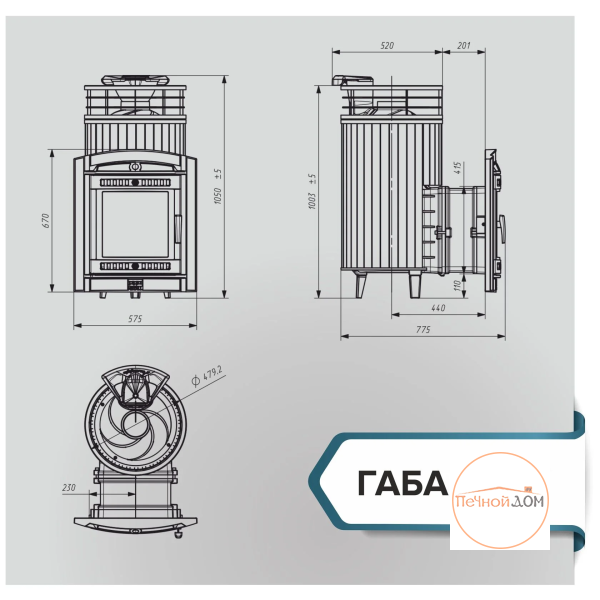 Большой объем топки и топливного тоннеля позволяет топить печь крупными, долго горящими дровами длиной от 40 см