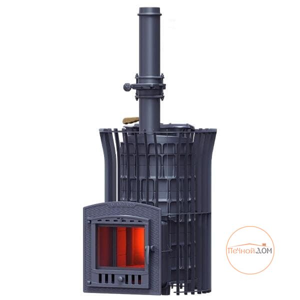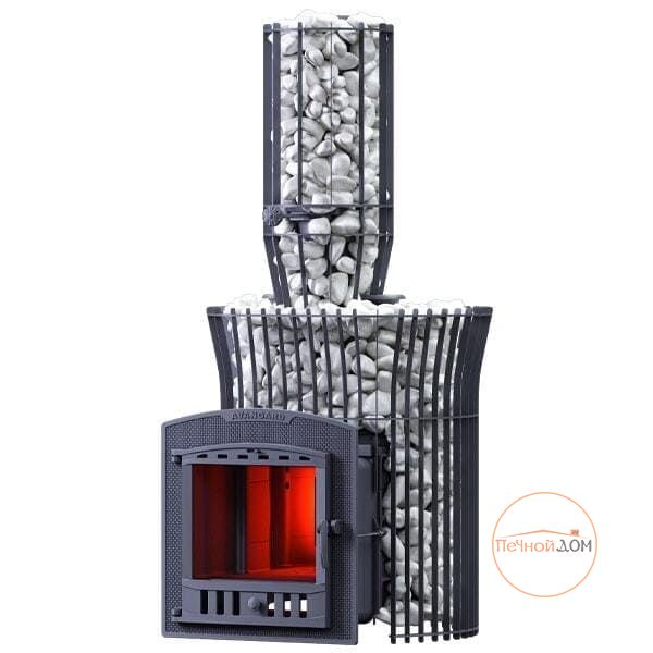 Масса пароиспарителя в печи AVANGARD 62 кг, и он нагревается прямым контактом с пламенем. У пароиспарителя 2 поверхности с увеличенной рабочей площадью – снизу идёт нагрев огнём, а сверху поддаётся вода для пара. У печи уникальная, массивная каменка с теплонакопительными воронками, для получения легкого пара.