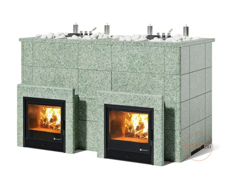Печь оснащена съёмной закрытой каменкой, позволяющей разогревать находящиеся в ней камни до температуры 600 градусов.