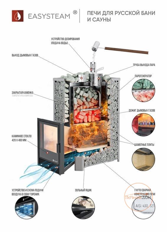 Банная печь из жаропрочной нержавеющей стали предназначена для установки в парном помещении бани или сауны. Дровяная печь серии Ялта оборудована внешней (открытой) и внутренней (закрытой) каменкой, рассчитана для частного использования, и предназначена для создания и поддержания в парильном отделении режима бани и сауны, с присущим ей температурно-влажным режимом. Вы получите столько лёгкого пара, сколько Вам будет угодно!