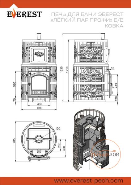 Печь для бани "Легкий пар Профи" Ковка / Эверест(Россия)