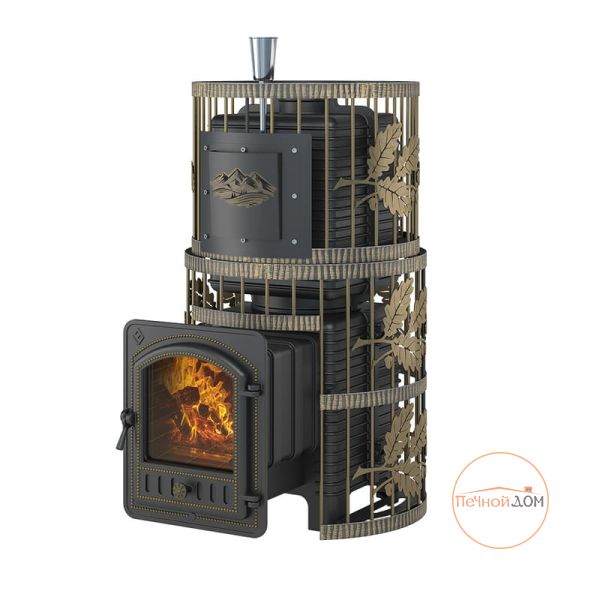 Печь состоит из двух модулей: топочной камеры и закрытой каменки из чугуна. Наиболее термонагруженные участки печи сделаны из жаропрочного чугуна толщиной 20 миллиметров.
