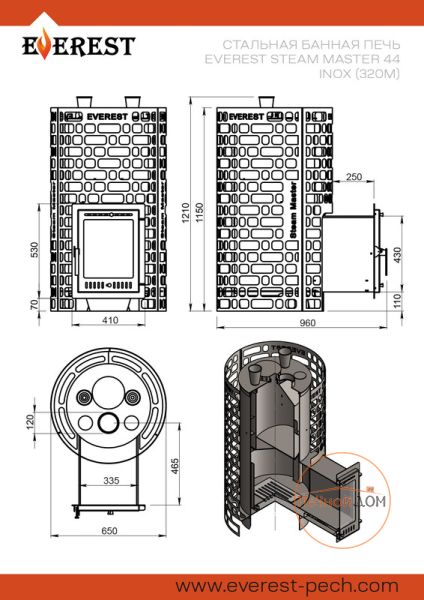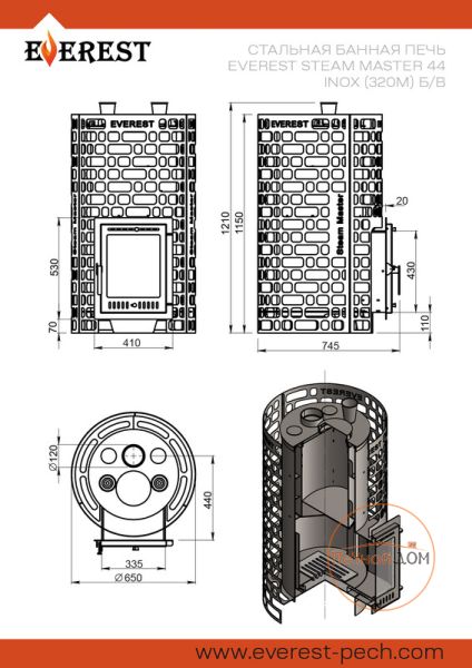 Печь для бани "Steam Master" 44 INOX / Эверест(Россия)