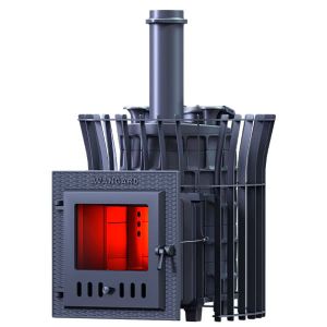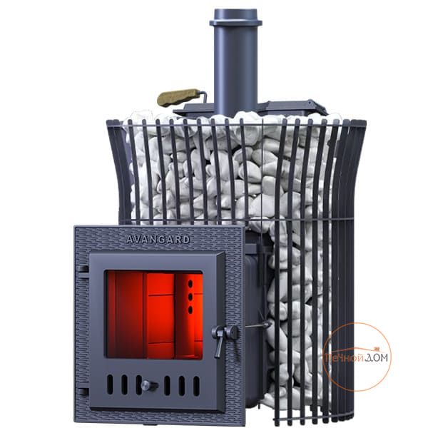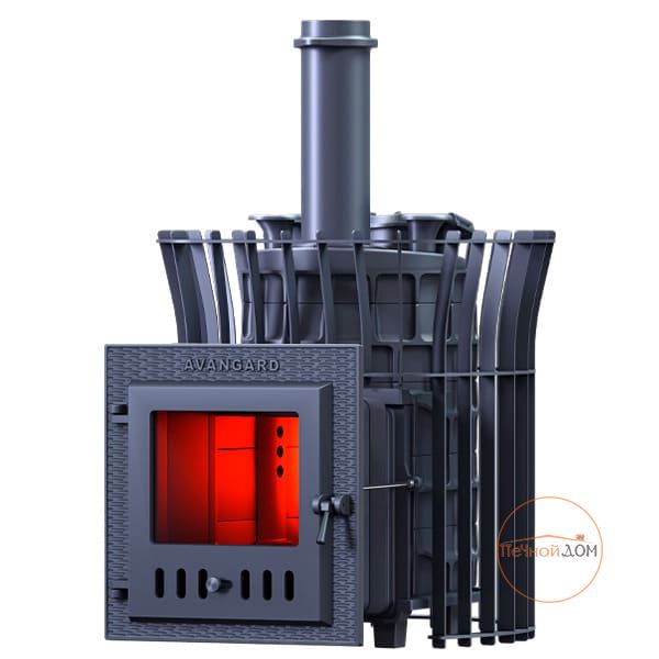 Масса пароиспарителя в печи AVANGARD 25– 42 кг, и он нагревается прямым контактом с пламенем. У пароиспарителя 2 поверхности с увеличенной рабочей площадью – снизу идёт нагрев огнём, а сверху поддаётся вода для пара. У печи уникальная, массивная каменка с теплонакопительными воронками, для получения легкого пара.