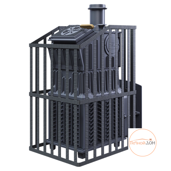 Печь легко модернизируется до полноценной печи предназначенной для Русской бани путем замены стальной сетки на каменную облицовку без демонтажа дымохода.
