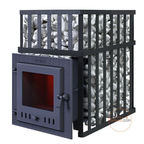 Чугунные банные печи ТМ «Гроза» — это современные печи, рассчитанные на малые и средние размеры парных. Печь имеет прочную сборную конструкцию, без резьбовых и сварных соединений, детали выполнены из легированного чугуна. Топка печей «Гроза» состоит из двух камер, разделенных пламегасителем. Радиаторные выступы каменки, направленные вглубь топки, увеличивают площадь контакта огня с каменкой и эффективность теплосъема. Для увеличения площади поверхности нагрева камней каменка снаружи оборудована чугунными шипами, направленными вверх. Между шипами укладываются банные камни или дополнительные чугунные заклады, такие как ядра и чугунные шишки. Сами чугунные шипы также являются частью заряда для лучшего испарения воды