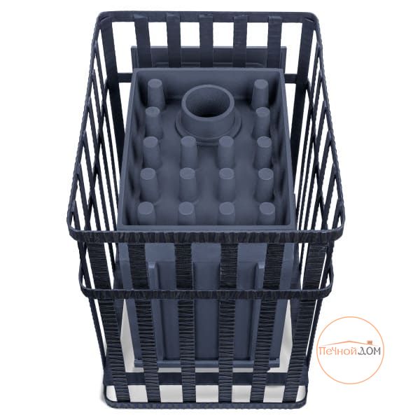 Каменка прямого нагрева, толщиной 25 мм и 146 теплосъемных шипов по всей её поверхности позволяют каменке быстро нагреться и долго сохранять тепло.