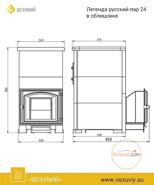 Печь для бани Легенда Русский пар 24 (240) талькохлорит / Везувий (Россия)