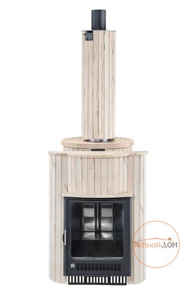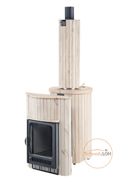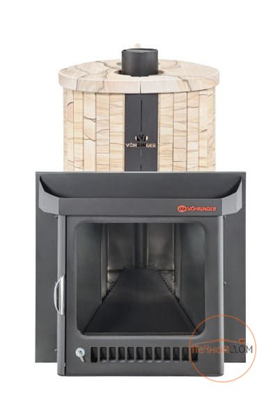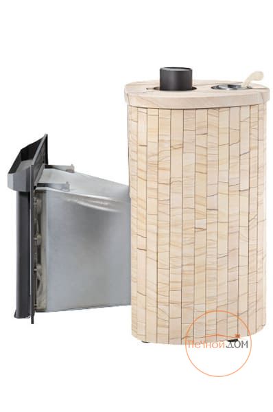 Облицовка печи – ламели из натурального камня, установленные вокруг всего корпуса. Камень блокирует распространение инфракрасного излучения, защищает парильщиков от случайного прикосновения к раскаленному металлу топки. Производство ламелей ведется по собственной запатентованной технологии завода Vöhringer.