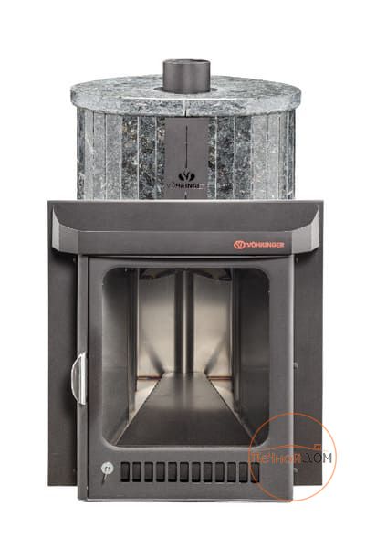 Облицовка печи – ламели из натурального камня, установленные вокруг всего корпуса. Камень блокирует распространение инфракрасного излучения, защищает парильщиков от случайного прикосновения к раскаленному металлу топки. Производство ламелей ведется по собственной запатентованной технологии завода Vöhringer.