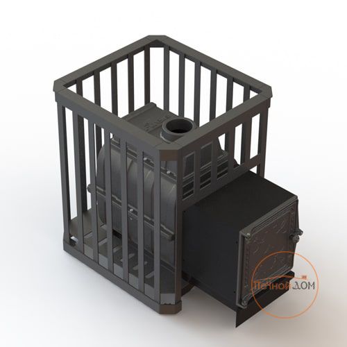Печь предназначена для отопления парильных помещений 14-24 куб. м. Топка печи чугунная. Каменка в виде сетки из кованной стали. Выносной канал 20 см для топки печи из смежного помещения. Топочная дверца чугунная стандартная К211 Fireway, размер 290х297 mm. Загрузка дров фронтальная. Диаметр дымохода 115мм. Расположение дымохода сверху. Отделка антрацит. Гарантия 5 лет.