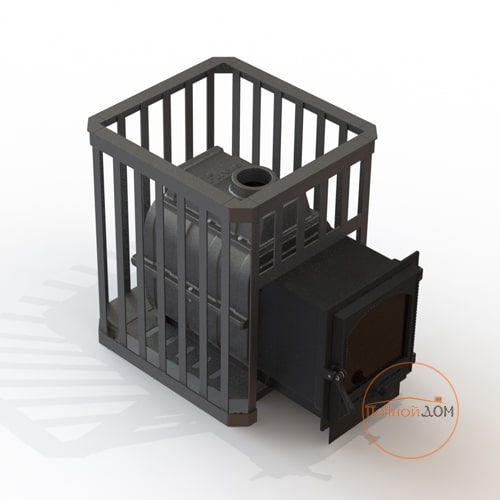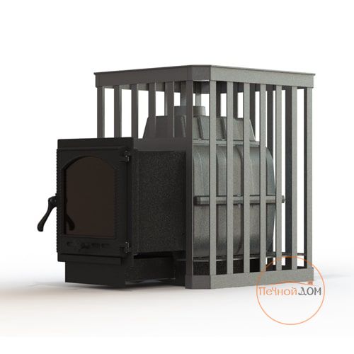 Печь предназначена для отопления парильных помещений 14-24 куб. м. Топка печи чугунная. Каменка в виде сетки из кованной стали - прямоугольной формы. Выносной канал 30 см для топки печи из смежного помещения. Топочная дверца чугунная стандартная К404 Fireway, размер 330х370 mm. Загрузка дров фронтальная. Диаметр дымохода 115 мм. Расположение дымохода сверху. Отделка антрацит. Размер стекла 255х255х4 mm, стекло имеет радиус по арке. Гарантия 5 лет.