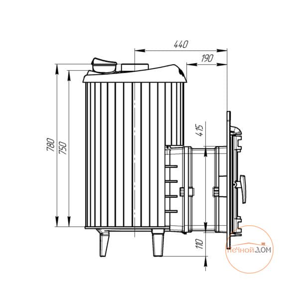 Большой объем топки и топливного тоннеля позволяет топить печь крупными, долго горящими дровами длиной от 40 см