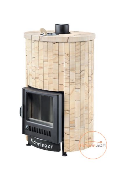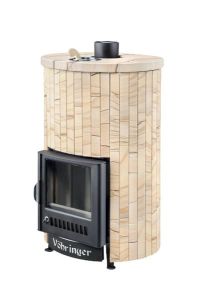 Облицовка печи – ламели из натурального камня, установленные вокруг всего корпуса. Камень блокирует распространение инфракрасного излучения, защищает парильщиков от случайного прикосновения к раскаленному металлу топки. Производство ламелей ведется по собственной запатентованной технологии завода Vöhringer.