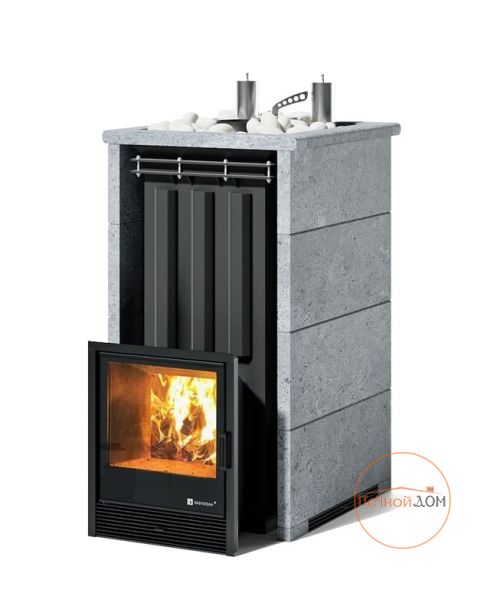 Печь оснащена съёмной закрытой каменкой, позволяющей разогревать находящиеся в ней камни до температуры 600 градусов.